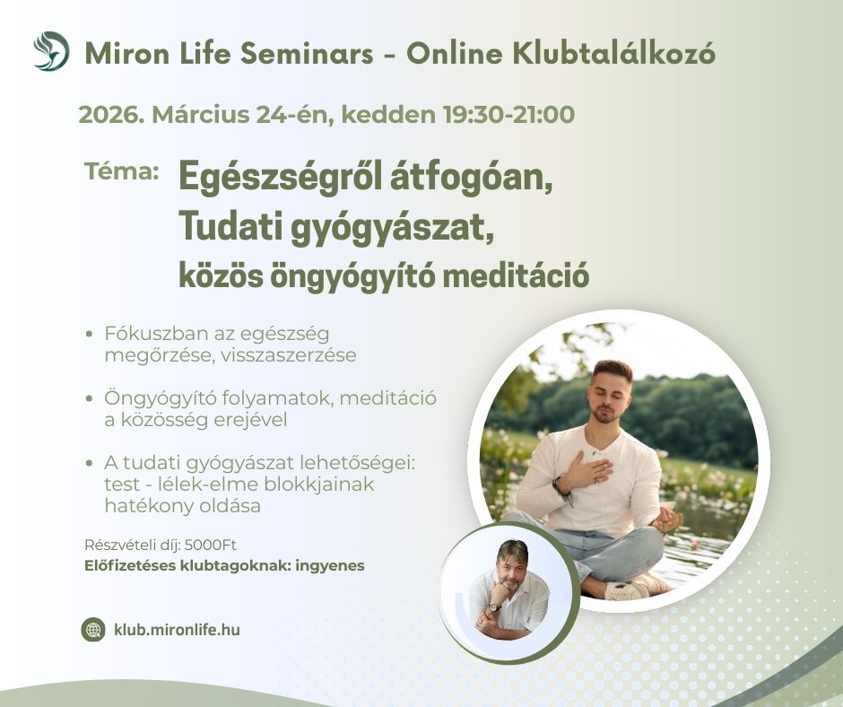 Gyere, és csatlakozz hozzánk a Miron Life Seminars Klub online találkozón, 2026.03.24-én kedden 19:30-kor.